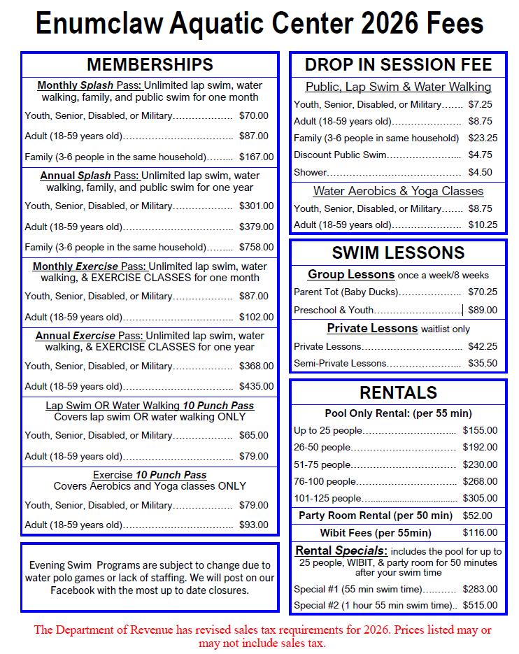 Welcome to the Enumclaw Aquatic Center!